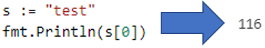 이런 식으로 출력할 수도 있고 변수로 저장할 수도 있다. 그리고 Go를 공부하면서 조금 신기한??? 부분이 있는데 어떻게 보면 프로그래밍 언어가 문자열을 저장하는 방법을 그대로 보이는 부분인 거 같기도 하다. string 타입인 변수를 배열처럼 index를 사용하여 접근할 수 있다는 점인데 index를 통해 접근하면 int 타입의 값이 반환된다. (int가 아니고 rune이라 해야 하나?? ㅎㅎ;;)