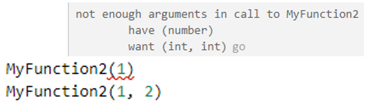 이렇듯 parameter list에 똑같은 int형 parameter를 두 개 받을 때 int를 두 번 써줘야 한다. 반면 Go는