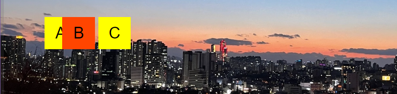 A B C가 적혀있는 노란색 박스들 중 B가 적혀있는 박스를 이용하여 negative margin을 설명하기 때문에 B box의 배경색을 변경한다.