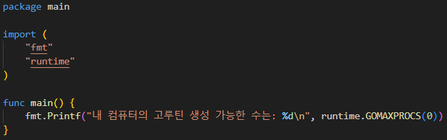 runtime package의 GOMAXPROCS 함수 호출 시 0을 인자로 넣을 경우 사용할 수 있는 OS 스레드의 수가 나온다. 1보다 크거나 같은 값을 인자로 넣으면 변경하는 것이고 무조건 큰 값을 할당한다고 성능이 좋아지는 것은 아니니 주의가 필요하다.