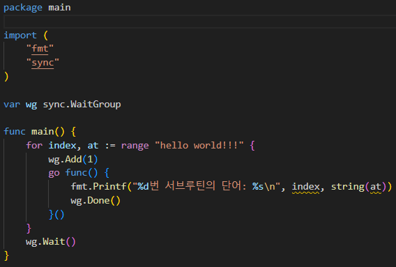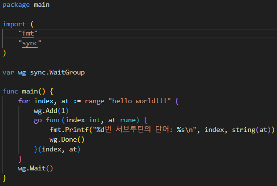 main 함수도 고루틴이고 이것을 메인루틴이라 말한다. 메인루틴이 끝나면 생성된 모든 고루틴은 종료되니 때문에 생성한 고루틴들이 끝날 때까지 메인루틴은 기다려줘야 한다.