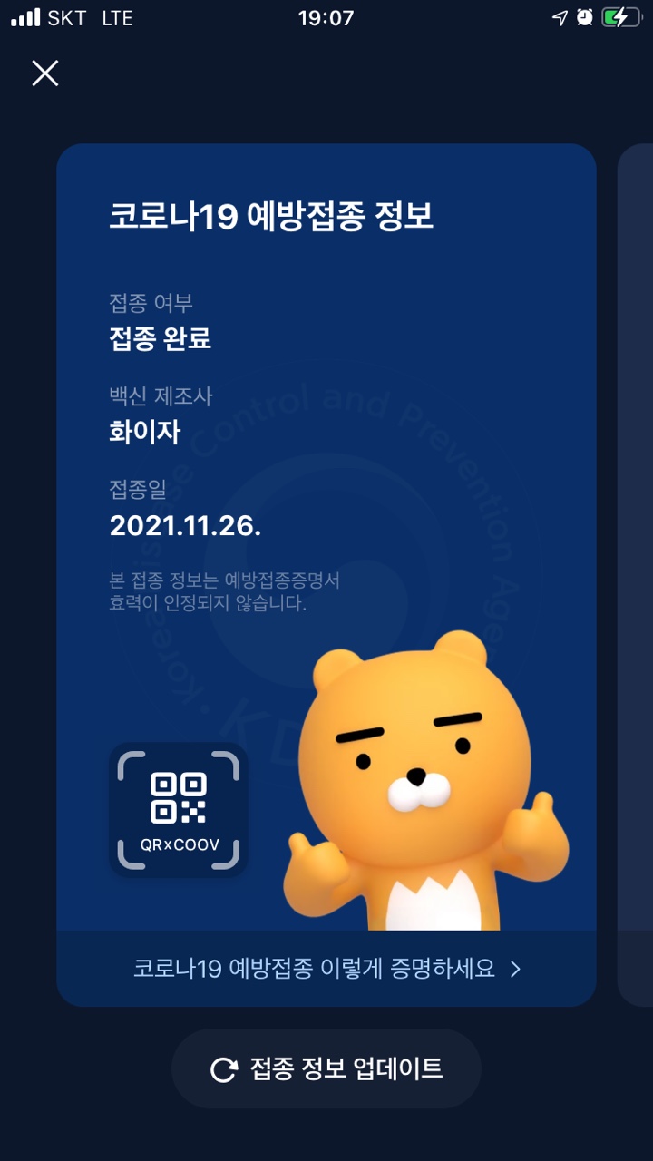 2021-11-26 금요일 백신 2차 접종이 끝났다. 하지만 매우 빡치는 상황이었는데 1차는 모더나를 맞았고 2차도 모더나를 맞고 싶었지만 30살 미만(젊어서 기쁘긴 하다. 캬캬캬컄ㅋㅋㅋ) 화이자.... 질병청에서 권고사항이 있었다. 권고사항은 추천 같은 개념이고 선택은 당사자가 하는 거 아닌가? 냥 화나네....