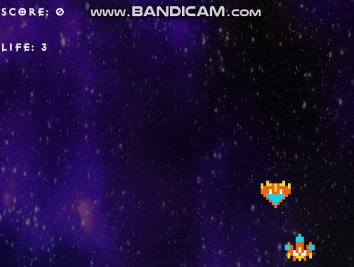 3. 조종 비행기와 적 비행기가 부딪칠 때 LIFE가 줄어들도록 기능 추가.